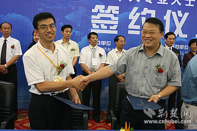 荊楚網(wǎng)消息 記者劉暢、姚啟慧報道:華創(chuàng)會第一天就掀起了高潮,今天下午在武昌科技會展中心,來自四面八方的客商頻頻微笑握手,簽下的協(xié)議項目投資總額超過30億元。