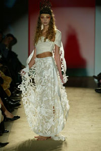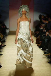 時(shí)尚的實(shí)驗(yàn)---如它所被定義的那樣---以擁有無(wú)數(shù)的褒獎(jiǎng)和特殊的證明為榮耀,并在世界范圍內(nèi)擁有無(wú)數(shù)的追隨者。她設(shè)計(jì)的多樣性使將她帶到比利時(shí)首席設(shè)計(jì)師Micha Van Hoecke的服裝秀去設(shè)計(jì)高級(jí)女裝。她明了且有棱角的風(fēng)格在她對(duì)顏色、材料和傳統(tǒng)的運(yùn)用上無(wú)不發(fā)揮的淋漓盡致。Marella Ferrera的風(fēng)格被描繪成既冷靜又線(xiàn)條明朗,通過(guò)對(duì)于一些原始材料的使用,像熔巖,玻璃,海芋,百合,無(wú)色水晶,刺繡雕刻,她常常創(chuàng)造出一些微型的藝術(shù)品.西西里亞、拉瓦、十勝石、陶瓦、無(wú)色水晶、銅、紙草以及紡織紙品,軟木和棕櫚樹(shù)根、皮革、緞帶、所有的蔬菜和動(dòng)物的毛皮等等都會(huì)成為她穿著的重要的靈感來(lái)源。"...服裝必須是完美協(xié)調(diào)穿著者的東西,而不能讓人成為服裝的傀儡..."