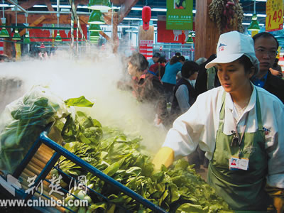 商業(yè)和物流的發(fā)展,讓購物環(huán)境變優(yōu)美了,品種更豐富了,市民可在明亮潔凈的超市中選購物品(下圖),甚至打個(gè)電話,點(diǎn)擊鼠標(biāo),足不出戶,需要的物品都能及時(shí)送到手中。武漢市正在發(fā)揮區(qū)位交通流通優(yōu)勢(shì),成為萬商云集的“聚寶盆”。