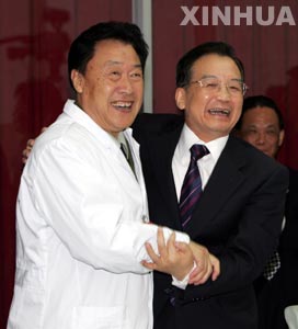 Chinese Premier Wen Jiabao (R) hugs Wang