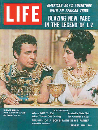 1961年,泰勒入主《埃及艷后》,20世紀(jì)福克斯開給她的報酬是當(dāng)時破紀(jì)錄的100萬美元。而她的羅曼史翻開了新的一頁——與扮演羅馬大將安東尼的理查德·伯頓陷入熱戀。