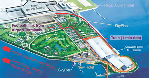 亞洲國(guó)際博覽館選址大嶼山香港國(guó)際機(jī)場(chǎng)附近,可通過(guò)完善的海陸空交通網(wǎng)絡(luò),連接全球各大主要城市。渡輪服務(wù)和完備的陸路交通配套設(shè)施,將博覽館連接至珠江三角洲城市及澳門(mén)等地。亞洲國(guó)際博覽館是香港展覽業(yè)持續(xù)發(fā)展的重要建設(shè)項(xiàng)目,將與現(xiàn)在位于灣仔的香港國(guó)際會(huì)展中心形成互補(bǔ)。
