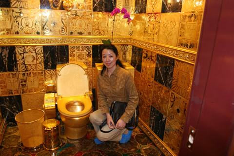 在2002年版的《吉尼斯世界紀(jì)錄》上有著這樣一條記錄:“用錢沖洗――世界上最昂貴的衛(wèi)生間由珠寶商林世榮制造,在他的中國(guó)香港商店售價(jià)240萬(wàn)英鎊。它完全由金子和昂貴的珠寶制成。抽水馬桶、洗臉臺(tái)、刷子、衛(wèi)生紙盒、鏡框、墻上架設(shè)的吊燈、墻上的瓷磚和門全部都由24K黃金構(gòu)成! “這里有一點(diǎn)寫得不對(duì),我的金廁所決不出售,我還要用它來(lái)專門注冊(cè)一個(gè)品牌,成為我們企業(yè)的象征!绷质罉s在接受記者采訪時(shí),詳細(xì)地解釋了自己對(duì)“金廁所”的感情。 現(xiàn)任香港恒豐金業(yè)科技集團(tuán)主席的林世榮說(shuō):“整個(gè)金廁所都是由我親自設(shè)計(jì)、監(jiān)督制造的,我甚至在工地呆過(guò)整整三天三夜沒(méi)有出來(lái),可以說(shuō)是傾注了極大的心血。很多人可能不了解我為什么會(huì)用這么多黃金來(lái)建造一個(gè)廁所,其實(shí)我不是為了炫耀,也不是喜歡奢侈浪費(fèi),我是在完成一個(gè)心愿。把土變成金了不起,把金變成土同樣了不起。”