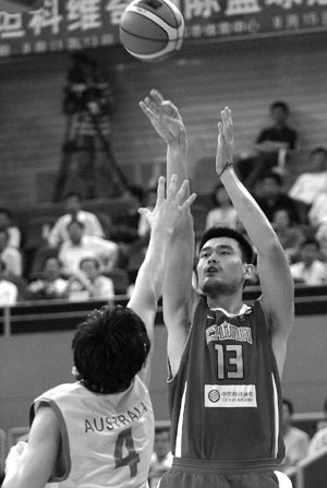 湖北日?qǐng)?bào)臺(tái)山15日電(記者戴文輝)今晚,中國(guó)男籃與澳大利亞隊(duì)比賽的最后關(guān)頭,姚明中投命中,以63比61險(xiǎn)勝對(duì)手,結(jié)束了斯坦科維奇杯賽,也終止了熱身賽中的八連敗。男籃將于明日從上海飛赴日本,世錦賽上中國(guó)隊(duì)的首場(chǎng)小組賽將在19日打響,對(duì)手是雅典奧運(yùn)會(huì)亞軍意大利隊(duì)。