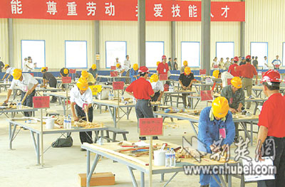 荊楚網(wǎng)(楚天都市報(bào)) (記者 黃宏 通訊員 鄒清選 攝影記者 劉中燦) 鑿子叮叮當(dāng)當(dāng),刨屑紛紛揚(yáng)揚(yáng),27名木工各自做著同樣的木隔扇———這一幕,并非出自哪個(gè)木工廠(chǎng),而是湖北省首屆建筑業(yè)百萬(wàn)農(nóng)民工技能大賽的現(xiàn)場(chǎng)。
