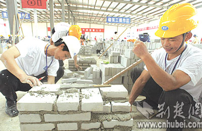 昨日,前往湖北城市建設(shè)職業(yè)技術(shù)學(xué)院藏龍島校區(qū)參賽的,除了精細(xì)木工外,還有砌筑工、鋼筋工和鑲貼工等工種,共114名選手。他們是從全省117萬(wàn)建筑工人中層層選拔出來(lái)的。