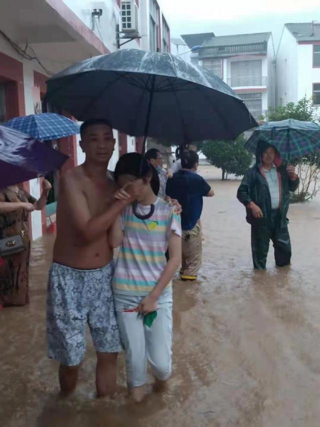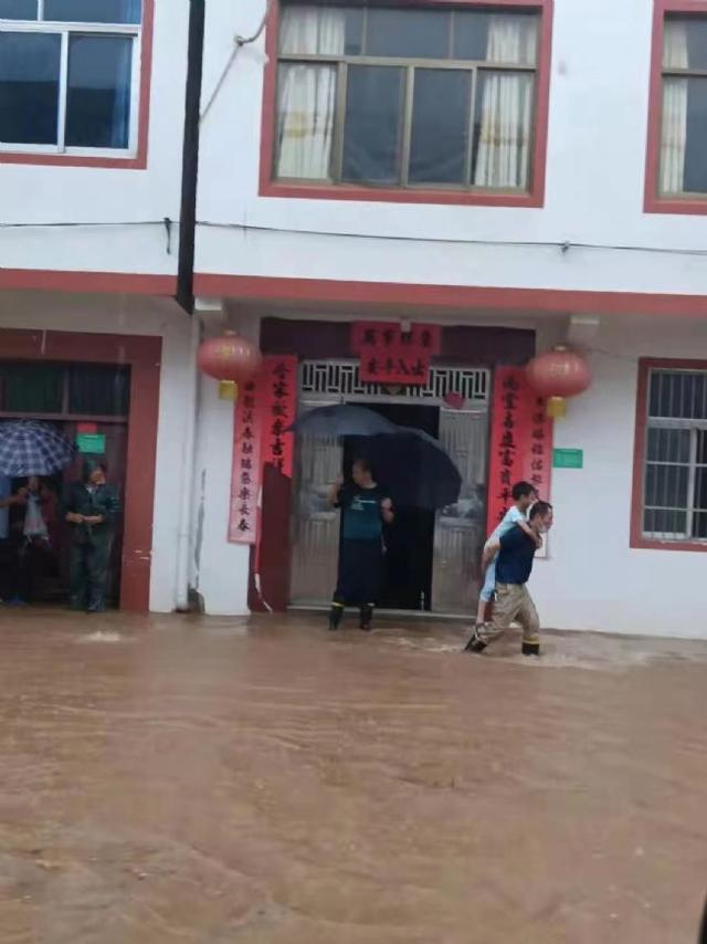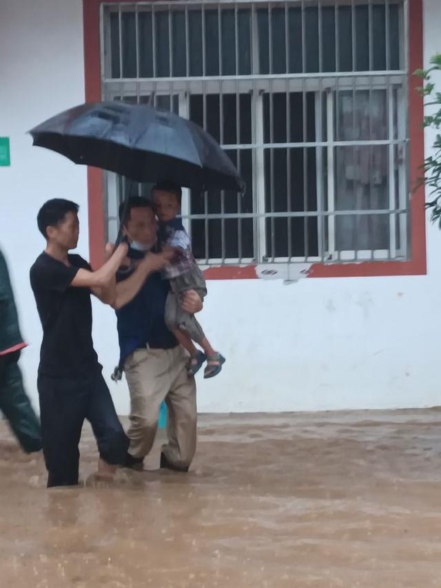 轉(zhuǎn)移小娃娃,一人撐傘、一人抱著。年紀(jì)大的、腿腳不便的,直接背著。背不動(dòng)的,便幾個(gè)人一起抬。