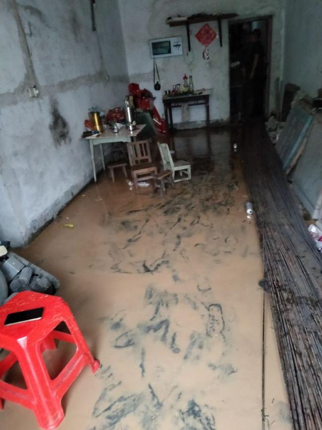 在柳林街道與陳湖咀村主干道交匯處,由于雨量過(guò)大,路面積水不斷上漲,湍急的洪水將排洪涵管沖破,整個(gè)路面底部出現(xiàn)垮塌,整排房屋隨時(shí)有塌陷危險(xiǎn),所幸排查轉(zhuǎn)移及時(shí)到位,未發(fā)生人員傷亡。