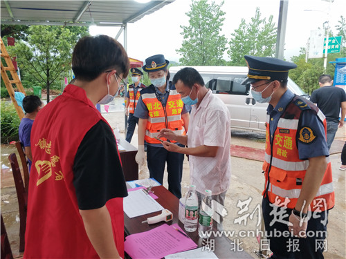 “大娘,請戴好口罩,我來幫您測下體溫?,F(xiàn)在疫情有擴散趨勢,千萬要做好防護。”8月6日,漢十支隊路政員陳紅濤一邊向居民宣傳防疫知識,一邊熟練地替大家測量體溫。
