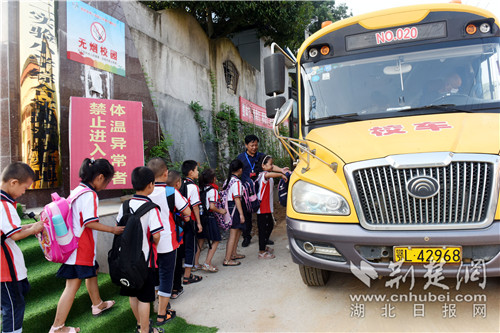 小學(xué)生在老師的指引下乘坐校車(chē) 通訊員 供圖