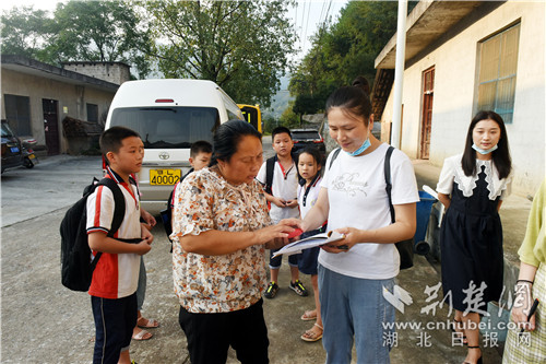 9月2日17時(shí)47分,崇陽(yáng)縣天城鎮(zhèn)鹿門(mén)鋪村9組村民黃燕保站在家門(mén)口等待乘坐校車(chē)的侄兒、侄女。