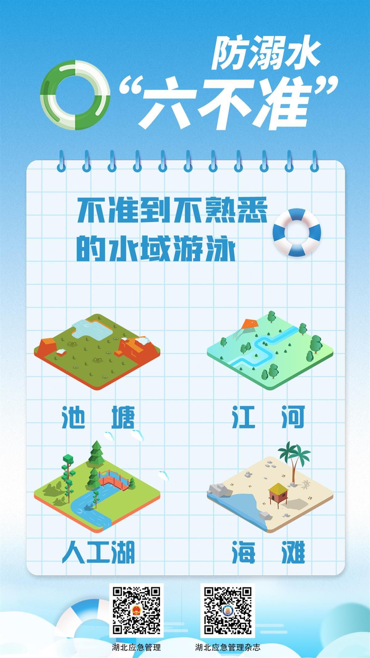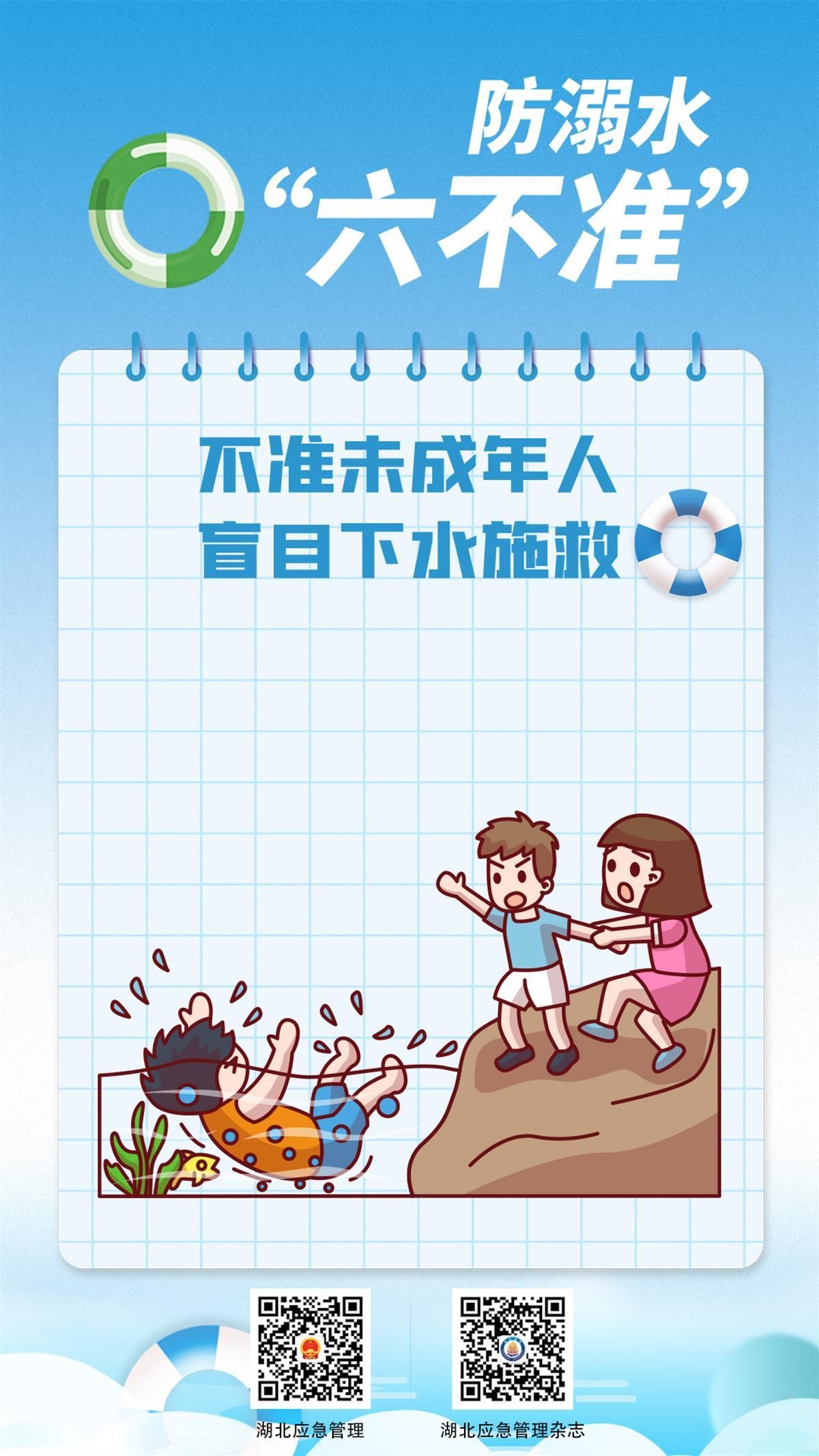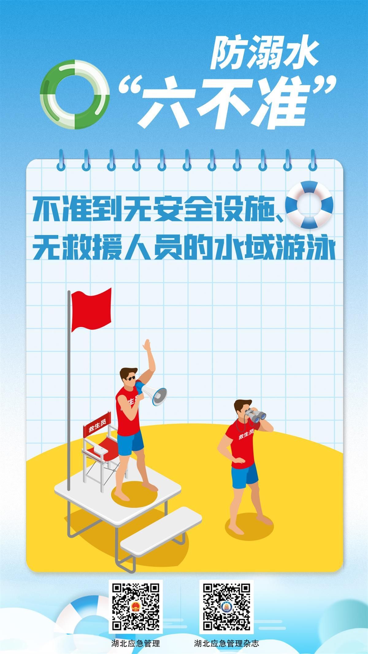 如何避免悲劇發(fā)生?7月8日,湖北省應(yīng)急管理廳發(fā)布系列海報(bào),提醒學(xué)生防溺水應(yīng)做到“六不準(zhǔn)”:不準(zhǔn)私自下水游泳;不準(zhǔn)擅自與他人結(jié)伴游泳;不準(zhǔn)在無(wú)家長(zhǎng)或教師帶領(lǐng)的情況下游泳;不準(zhǔn)到無(wú)安全設(shè)施、無(wú)救援人員的水域游泳;不準(zhǔn)到不熟悉的水域游泳;不準(zhǔn)未成年人擅自下水施救。