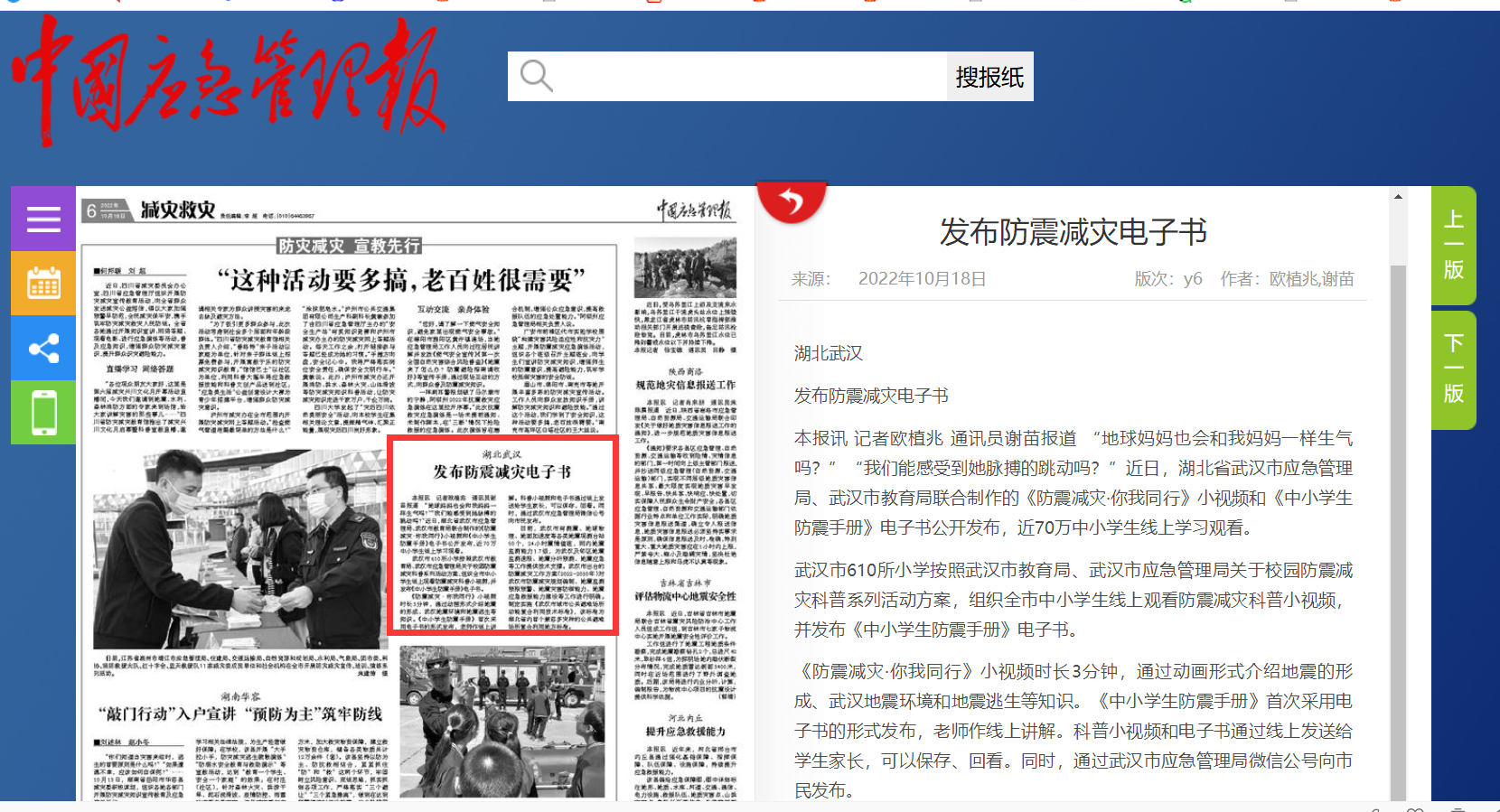 “地球媽媽也會和我媽媽一樣生氣嗎?”“我們能感受到她脈搏的跳動嗎?”近日,湖北省武漢市應(yīng)急管理局、武漢市教育局聯(lián)合制作的《防震減災(zāi)·你我同行》小視頻和《中小學(xué)生防震手冊》電子書公開發(fā)布,近70萬中小學(xué)生線上學(xué)習(xí)觀看。