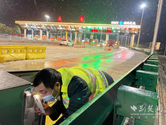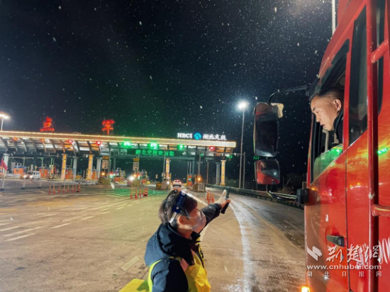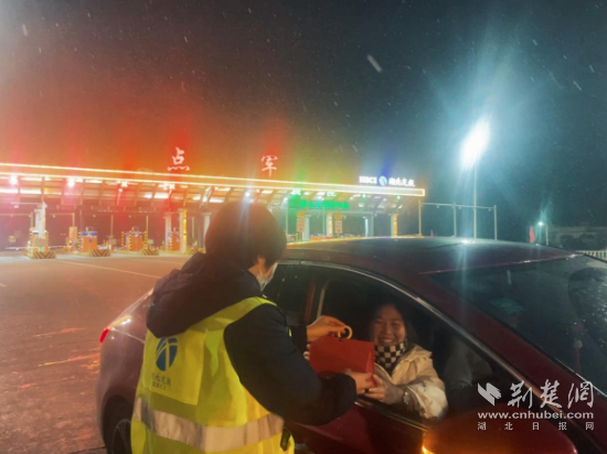 荊楚網(wǎng)(湖北日?qǐng)?bào)網(wǎng))訊(記者趙秀琳 通訊員鮮于露華)1月15日,農(nóng)歷臘月二十四,宜昌地區(qū)也迎來(lái)了春運(yùn)后的首輪降雪,歸家的游子馬不停蹄邁著匆忙的腳步,追趕那闔家團(tuán)圓的歡聲笑語(yǔ)。臨近春節(jié),迎著漫天飄飛雪花,宜昌的“南大門(mén)”——點(diǎn)軍收費(fèi)站進(jìn)出城區(qū)流量明顯增多。管理所在做好除雪保暢同時(shí),積極開(kāi)展“雪天送溫暖”志愿服務(wù)活動(dòng),讓司乘感受到“宜路”溫情。