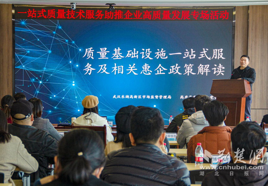 荊楚網(wǎng)(湖北日報網(wǎng))訊(記者劉陽 通訊員胡甜)2月28日,由武漢市東湖高新區(qū)市場監(jiān)管局指導(dǎo),湖北省標(biāo)準(zhǔn)化與質(zhì)量研究院、武漢東湖高新集團(tuán)股份有限公司聯(lián)合主辦,湖北光谷標(biāo)準(zhǔn)創(chuàng)新科技有限公司、武漢科訊智園技術(shù)服務(wù)有限公司等單位承辦的“一站式質(zhì)量技術(shù)服務(wù),助推企業(yè)高質(zhì)量發(fā)展專場活動”在武漢軟件新城舉辦。來自東湖高新區(qū)的40余家企業(yè)的50名代表參加了此次活動。