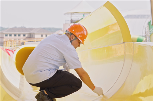 高溫炎炎,水上樂(lè)園室外溫度達(dá)到38度,檢驗(yàn)員不畏酷暑,戴上安全帽,穿上手套,手持儀器設(shè)備,檢查各項(xiàng)關(guān)鍵環(huán)節(jié),全面評(píng)估設(shè)備的安全。在檢驗(yàn)過(guò)程中,檢驗(yàn)員上至水滑道頂端,下至地下水泵機(jī)房,嚴(yán)格按照相關(guān)法規(guī)與標(biāo)準(zhǔn),對(duì)結(jié)構(gòu)件、安全防護(hù)裝置、浮動(dòng)裝置等進(jìn)行測(cè)試,確保設(shè)施安全性和穩(wěn)定性達(dá)到標(biāo)準(zhǔn)要求。檢驗(yàn)員還對(duì)滑梯連接處是否平滑、操作流程是否規(guī)范進(jìn)行了檢查;在電氣方面測(cè)量了設(shè)備接地、絕緣電阻是否符合要求;最后還進(jìn)行了試滑試驗(yàn),將靜態(tài)檢驗(yàn)和動(dòng)態(tài)檢驗(yàn)相結(jié)合,排查設(shè)備潛在的安全隱患。