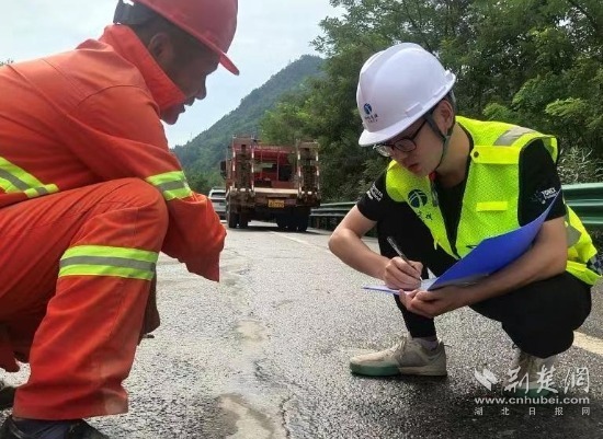 每年夏季,是道路踏勘的黃金期和高峰期,為保障轄區(qū)道路安全,在路面氣溫高達(dá)39°C的宜巴高速K1266段施工現(xiàn)場,第六巡檢辦的養(yǎng)護(hù)員李雙正在對路面專項(xiàng)施工現(xiàn)場進(jìn)行路面安全質(zhì)量檢查,對每一處病害類型、處治工藝、注意事項(xiàng)進(jìn)行現(xiàn)場交底確認(rèn)。