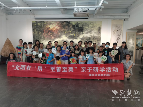 在湖北武漢,來自局系統(tǒng)在漢單位的20 名小朋友與媽媽一起參觀了東湖藝術(shù)館,欣賞了館內(nèi)珍藏的書畫、奇石、文玩等藝術(shù)品。在東湖藝術(shù)館美術(shù)老師們的悉心指導(dǎo)下,孩子們拿起畫筆,飽蘸顏色,描繪著多彩的扇面,他們將自己對媽媽濃濃的愛意融入繽紛扇面,為她們帶來炎炎夏日里沁人心脾的清涼。