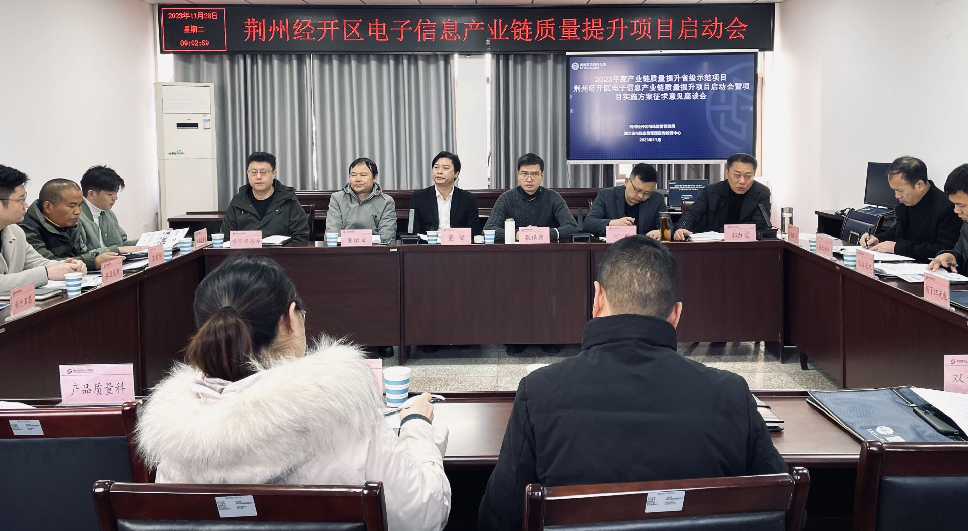 荊楚網(wǎng)(湖北日?qǐng)?bào)網(wǎng))訊(通訊員高俊雅)11月28日,2023年度產(chǎn)業(yè)鏈質(zhì)量提升省級(jí)示范項(xiàng)目——荊州經(jīng)開(kāi)區(qū)電子信息產(chǎn)業(yè)鏈質(zhì)量提升項(xiàng)目啟動(dòng)會(huì)暨項(xiàng)目實(shí)施方案征求意見(jiàn)座談會(huì)在荊州經(jīng)開(kāi)區(qū)市場(chǎng)監(jiān)管局舉辦,荊州市區(qū)兩級(jí)市場(chǎng)監(jiān)管系統(tǒng)有關(guān)領(lǐng)導(dǎo)、荊州經(jīng)開(kāi)區(qū)管委會(huì)有關(guān)部門(mén)負(fù)責(zé)人、質(zhì)量提升專家工作組及區(qū)內(nèi)相關(guān)企業(yè)代表30余人參加會(huì)議。