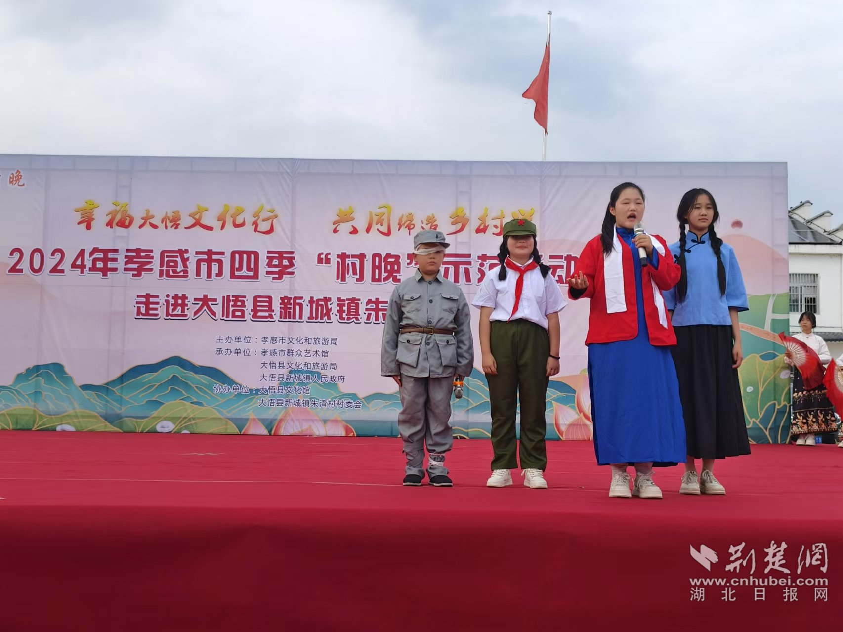 非遺傳承人表演鋼鐮大鼓《旅游請到大悟來》,傳承紅色文化,展大悟豐富的旅游資源,迎四面八方之客;新城鎮(zhèn)中心小學(xué)六年級學(xué)生表演舞臺劇《穿越時空的對話》,通過刻畫革命先輩和當代青少年的對話,以獨特的創(chuàng)意和生動的演繹,展現(xiàn)了革命歷史的厚重與傳承,激發(fā)著觀眾的愛國情懷和奮斗精神……現(xiàn)場熱鬧非凡,給村民帶來了一場視覺聽覺盛宴。