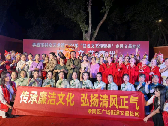 荊楚網(wǎng)(湖北日?qǐng)?bào)網(wǎng))訊(通訊員向晨 楊纓)10月18日晚,孝感市孝南區(qū)廣場(chǎng)街道文昌社區(qū)聯(lián)合孝感市群眾藝術(shù)館,開(kāi)展“紅色文藝輕騎兵”走進(jìn)文昌社區(qū),傳承廉潔文化,弘揚(yáng)清風(fēng)正氣,惠民文藝演出。