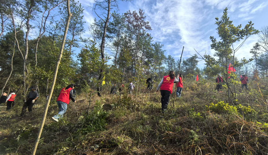 植樹(shù)現(xiàn)場(chǎng)一派熱火朝天,大家干勁十足,配合默契。在林業(yè)人員的專業(yè)指導(dǎo)下,大家分工協(xié)作,有的挖坑,有的扶苗,有的培土,到處都是忙碌的身影。大家不顧鞋褲上的泥土,一起揮鋤揚(yáng)鍬,把一棵棵樹(shù)苗穩(wěn)穩(wěn)地栽好,經(jīng)過(guò)一天的辛苦奮戰(zhàn),共栽種扁柏2000株,楓香4000株,四季青4000株。