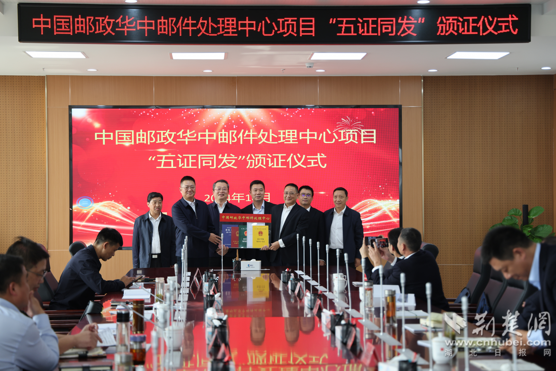 荊楚網(wǎng)(湖北日報網(wǎng))訊(通訊員 肖文丹、饒清雄)10月30日,中國郵政華中郵件處理中心項目“五證同發(fā)”活動在中國郵政孝感分公司舉行。該項目也是繼6月18日孝南區(qū)頒發(fā)全省首批“一網(wǎng)集成”辦理“五證”后的又一重點項目。