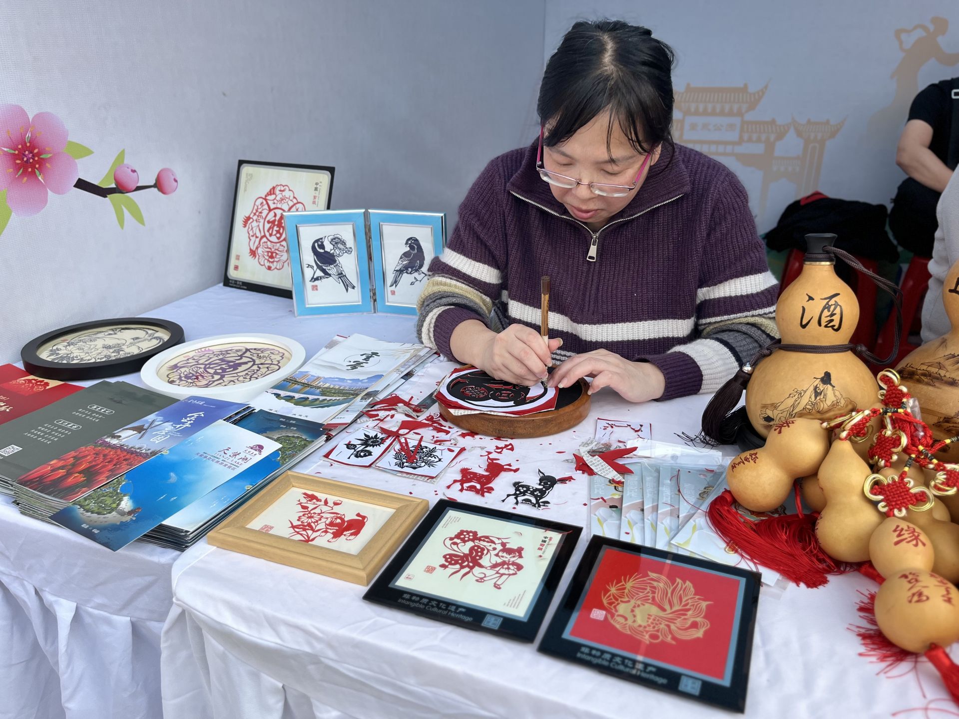 此外,在活動現(xiàn)場,來自7個縣市區(qū)的12個非遺展臺吸引著群眾們的駐足觀賞,孝感米酒、雕花剪紙、安陸水墨漫畫、云夢魚面、應(yīng)城黃灘醬油、大悟茶葉等代表性非遺文化技藝紛紛亮相。