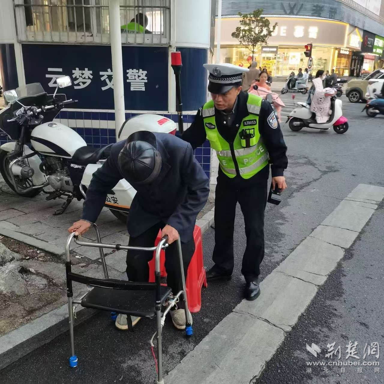 當(dāng)日17時(shí)許,云夢(mèng)縣公安局交警大隊(duì)在夢(mèng)澤大道孝武紅綠燈路口執(zhí)勤時(shí),突然,一位神情恍惚的老人雙手緊握助步器,在街道上徘徊著四處張望,好像迷了路的樣子,在川流不息的街上顯得格外危險(xiǎn),引起了執(zhí)勤交警的注意。