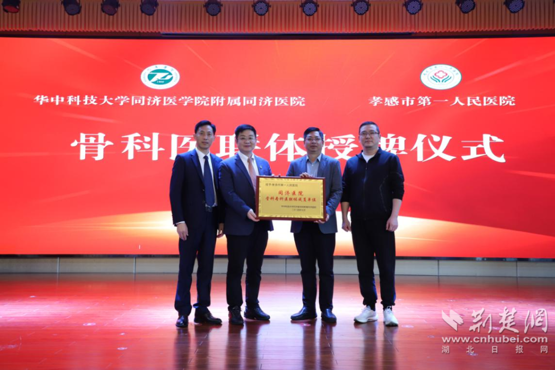 荊楚網(wǎng)(湖北日?qǐng)?bào)網(wǎng))訊(通訊員余雅翾)11月16日上午,華中科技大學(xué)同濟(jì)醫(yī)學(xué)院附屬同濟(jì)醫(yī)院與孝感市第一人民醫(yī)院舉行骨科專(zhuān)科聯(lián)盟授牌儀式。武漢同濟(jì)醫(yī)院肖駿教授、孝感市第一人民醫(yī)院黨委書(shū)記楊鵬鳴等黨委班子成員及職能科室負(fù)責(zé)人出席授牌儀式。