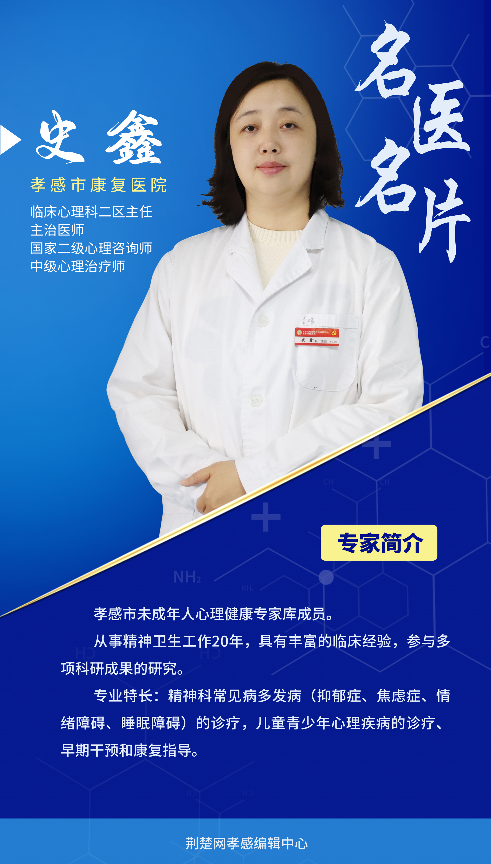 荊楚網(wǎng)(湖北日報網(wǎng))訊(記者葉修頎 通訊員周俊)青少年是一個獨(dú)特的群體,在這個發(fā)展階段,孩子身心尚不成熟,容易在學(xué)習(xí)、生活、人際交往、自我意識等方面,遇到各種心理困惑和問題,引發(fā)心理行為問題。共治心理健康問題,共享心理健康成果。我們特別邀請了孝感市康復(fù)醫(yī)院臨床心理科二區(qū)主任、主治醫(yī)師史鑫專家,幫助廣大師生家長解疑答惑。