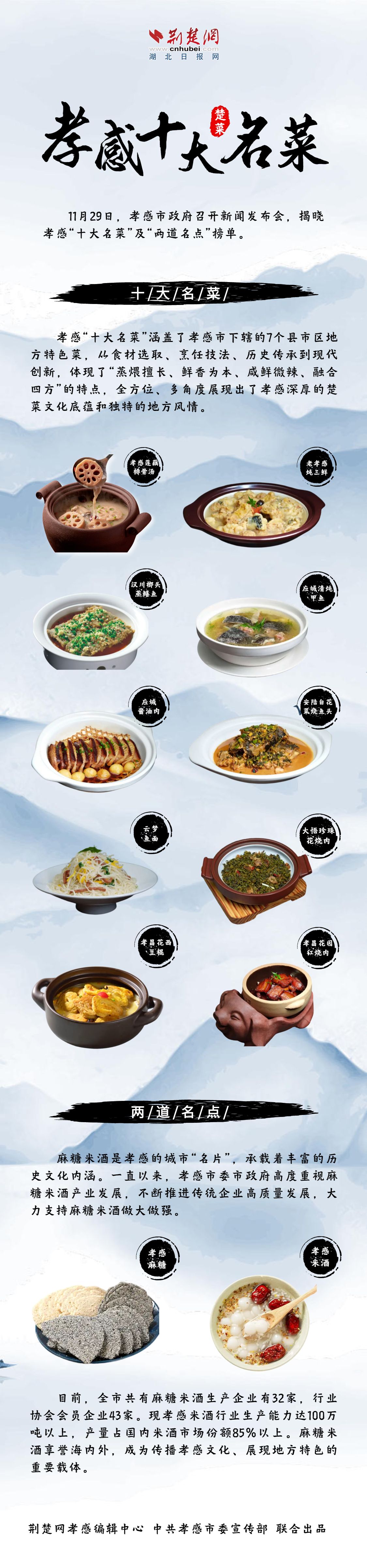 荊楚網(wǎng)(湖北日?qǐng)?bào)網(wǎng))訊(記者黃菲 通訊員雷振林 李林)11月29日,孝感市政府召開新聞發(fā)布會(huì),揭曉孝感“十大名菜”及“兩道名點(diǎn)”榜單。一起來看看!