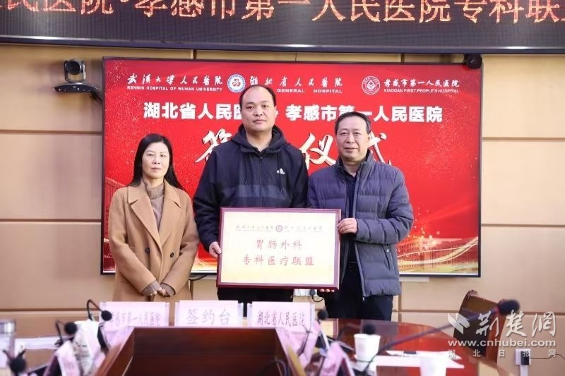 荊楚網(wǎng)(湖北日報網(wǎng))訊(通訊員胡佳萍)11月28日,武漢大學人民醫(yī)院授予孝感市第一人民醫(yī)院“婦產(chǎn)科專科醫(yī)療聯(lián)盟”“胃腸外科??坡?lián)盟”和“林慧慶教授專家團隊工作室”牌匾,并現(xiàn)場簽約,開啟兩院合作新篇章。