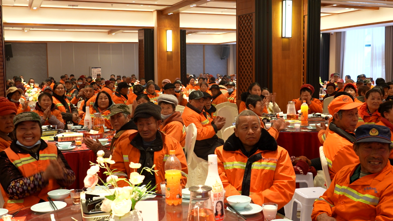 “這次年飯吃的開心,玩的開心,希望以后的工作中更加努力,把城市的環(huán)境衛(wèi)生打掃的整潔干凈?!杯h(huán)衛(wèi)工人陳冬梅說。