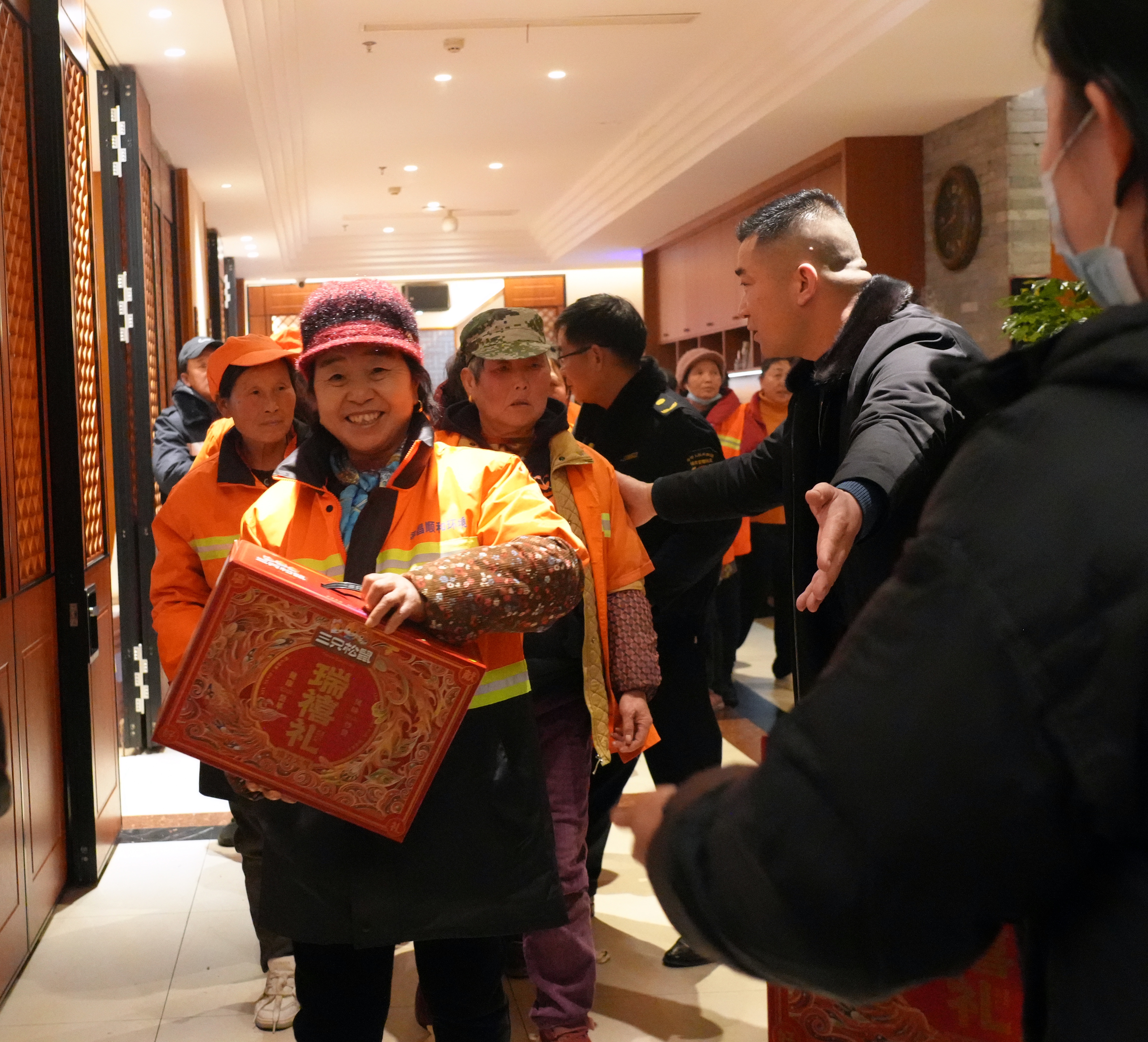 “這樣的活動(dòng)特別好,讓我們也感受到了溫暖。這頓年飯我們也吃得很開心,也感受到了濃濃的年味。真的特別感動(dòng),能感受到社會對我們的關(guān)心,太感謝了!”環(huán)衛(wèi)工人王春蘭說。