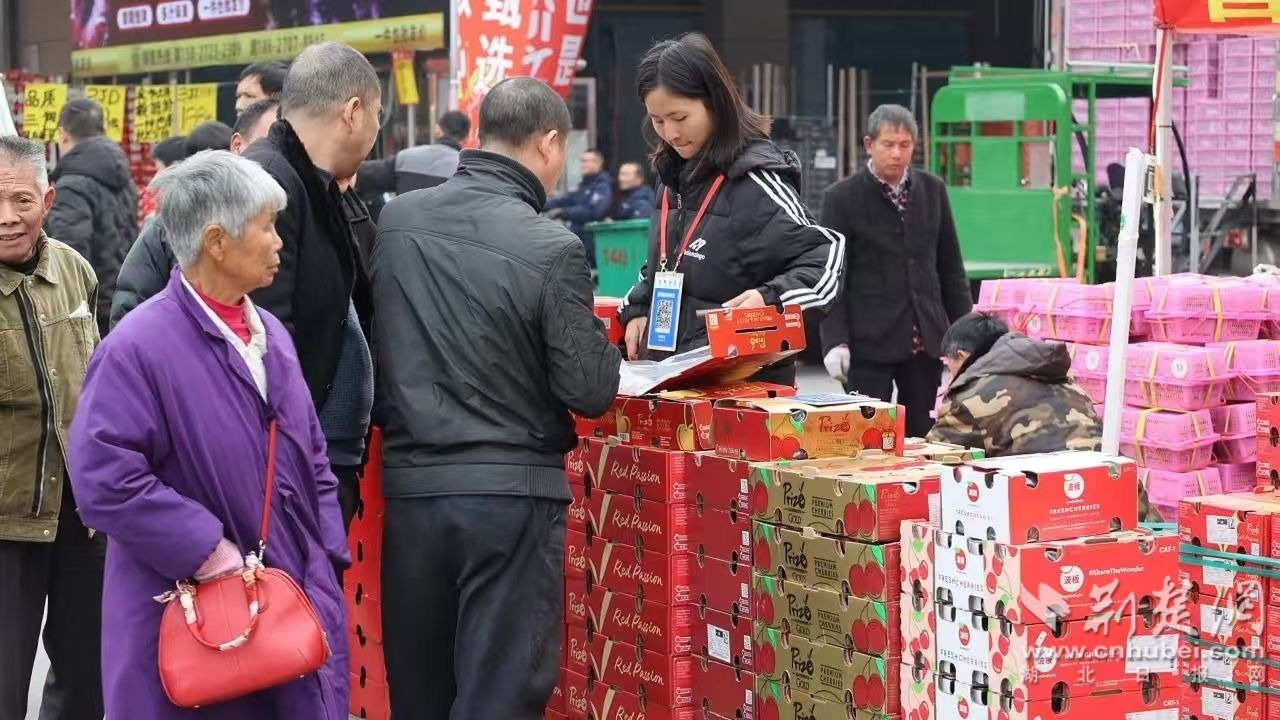 “為了節(jié)前保供,今年增加了河北、云南、孝南等產地儲備,縮短了發(fā)車間隔,隨時能夠保證供應?!笔卟藚^(qū)的商戶陳依坤說,目前日銷量將近100噸,相比于平常,增幅達到了50%。