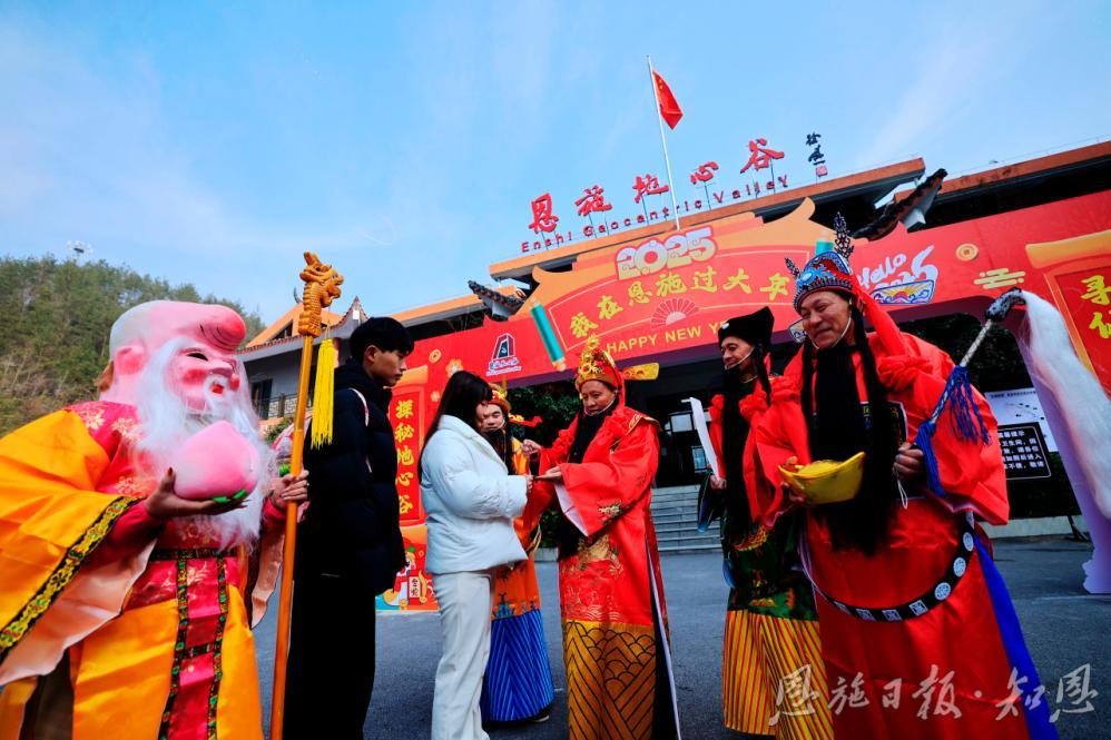 “我在恩施過大年”,“打糍粑、團年守歲、出天行、搶銀水、天公行、趕毛狗、鬧元宵……”恩施土家眾多年俗非遺都能在地心谷畔找到相應的旅拍創(chuàng)作點,讓相約相聚“地心峽谷過大年”年俗非遺旅拍創(chuàng)作成為2025新年最美的年味影像。