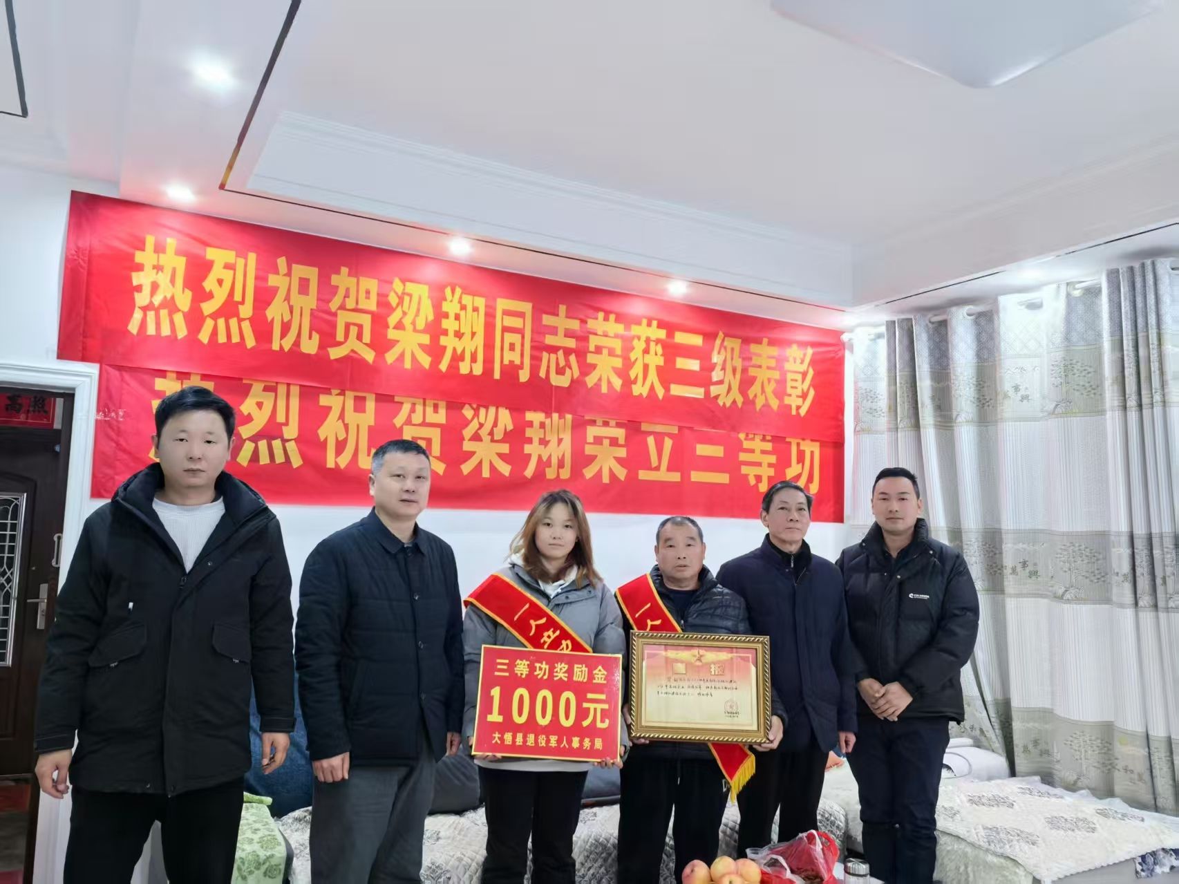 荊楚網(wǎng)(湖北日?qǐng)?bào)網(wǎng))訊(通訊員 張?zhí)K軍)五年磨一劍,軍營建功顯本色;兩度獲殊榮,喜報(bào)送家揚(yáng)美名。2月20日,大悟縣退役軍人事務(wù)局和城關(guān)鎮(zhèn)退役軍人服務(wù)站工作人員為立功現(xiàn)役軍人送去喜報(bào)并慰問家屬,將一份承載著榮譽(yù)的三級(jí)表彰喜報(bào)送到梁翔家中,讓軍屬共享這份榮耀。