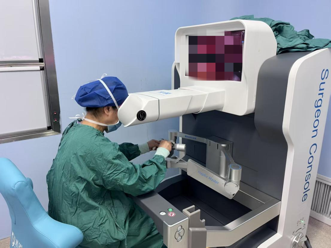 手術(shù)過程中,潘谷英沉穩(wěn)地操控著控制臺,實時向機械臂發(fā)出精準指令。在她的指揮下,機械臂猶如靈動的舞者,精準地完成輸卵管的分離、縫合與修復(fù)動作。