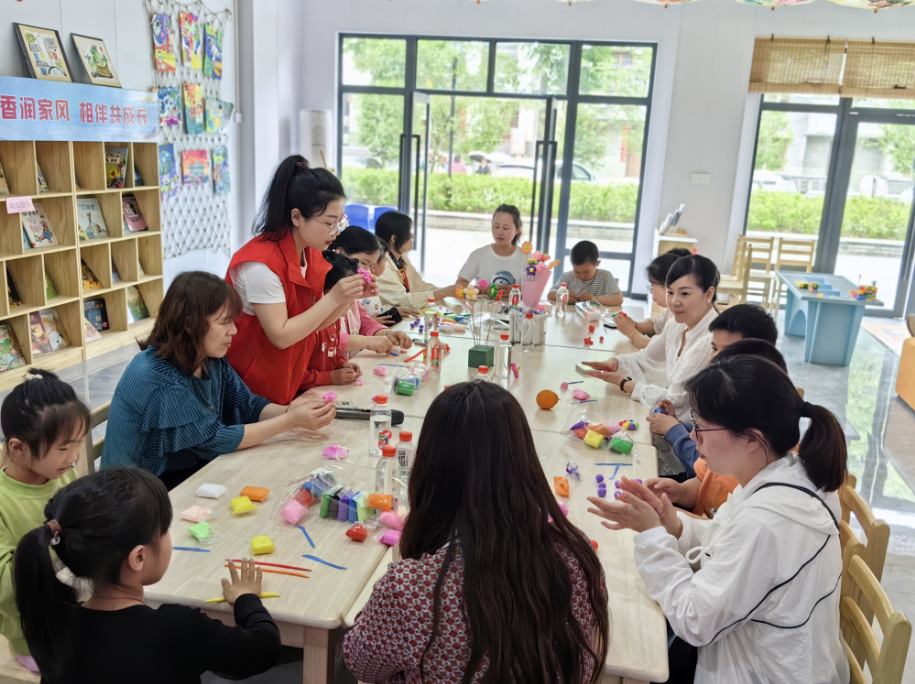 赤壁市羊樓洞村,愛心媽媽正在帶領孩子們做手工?!?/p>