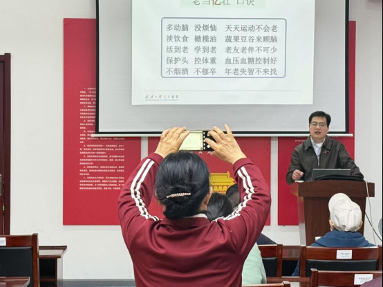 講座中,張主任結(jié)合實(shí)際生活中的行為案例,向大家闡述了阿爾茨海默病的十大危險信號、三大典型癥狀、臨床表現(xiàn)等知識。張主任強(qiáng)調(diào),記憶減退、詞不達(dá)意、思維混亂、判斷力下降等腦功能異常和性格行為改變是阿爾茨海默癥的典型表現(xiàn),也是患病的第一階段,提醒居民對照自查,降低患病風(fēng)險。同時對照自身,是否有高血壓、糖尿病、抑郁癥、聽力損失等……這些都有患病風(fēng)險。