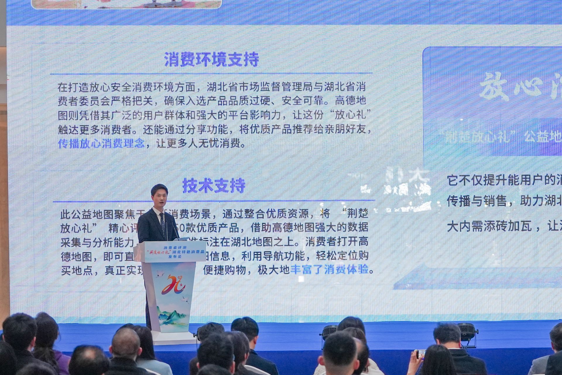 活動現(xiàn)場,高德地圖“荊楚放心禮”公益地圖和供銷荊選商城“荊楚放心禮”特色館專區(qū)等新消費(fèi)場景同步上線,消費(fèi)者可借助這兩個平臺,選購“荊楚放心禮”湖北特色消費(fèi)品。