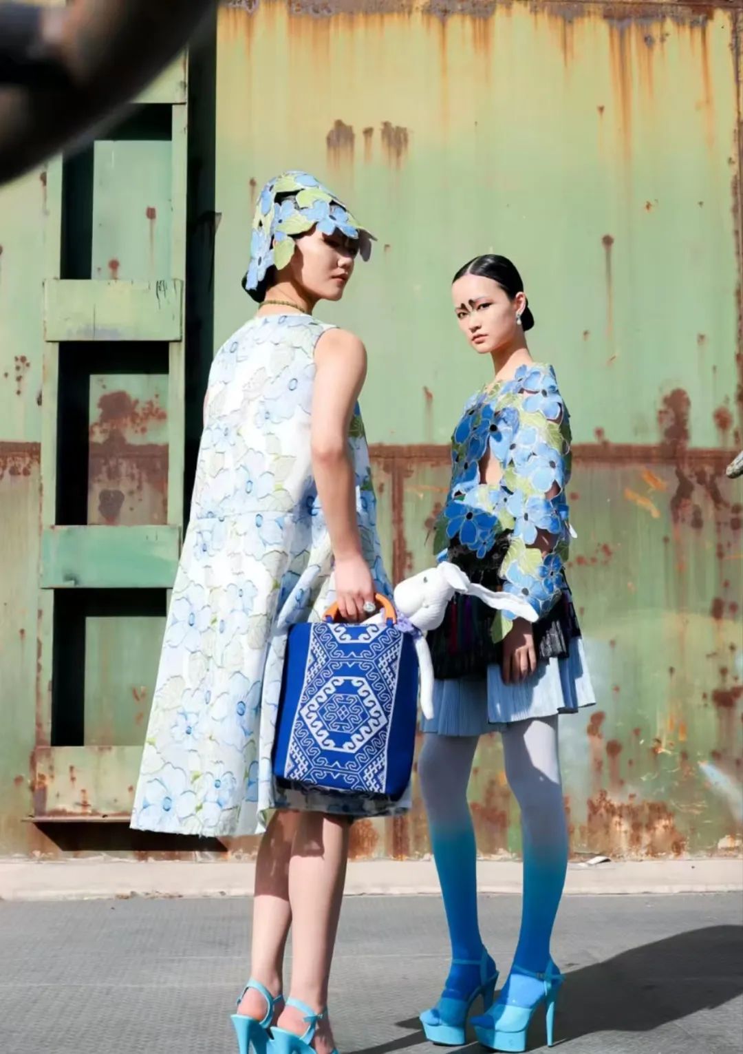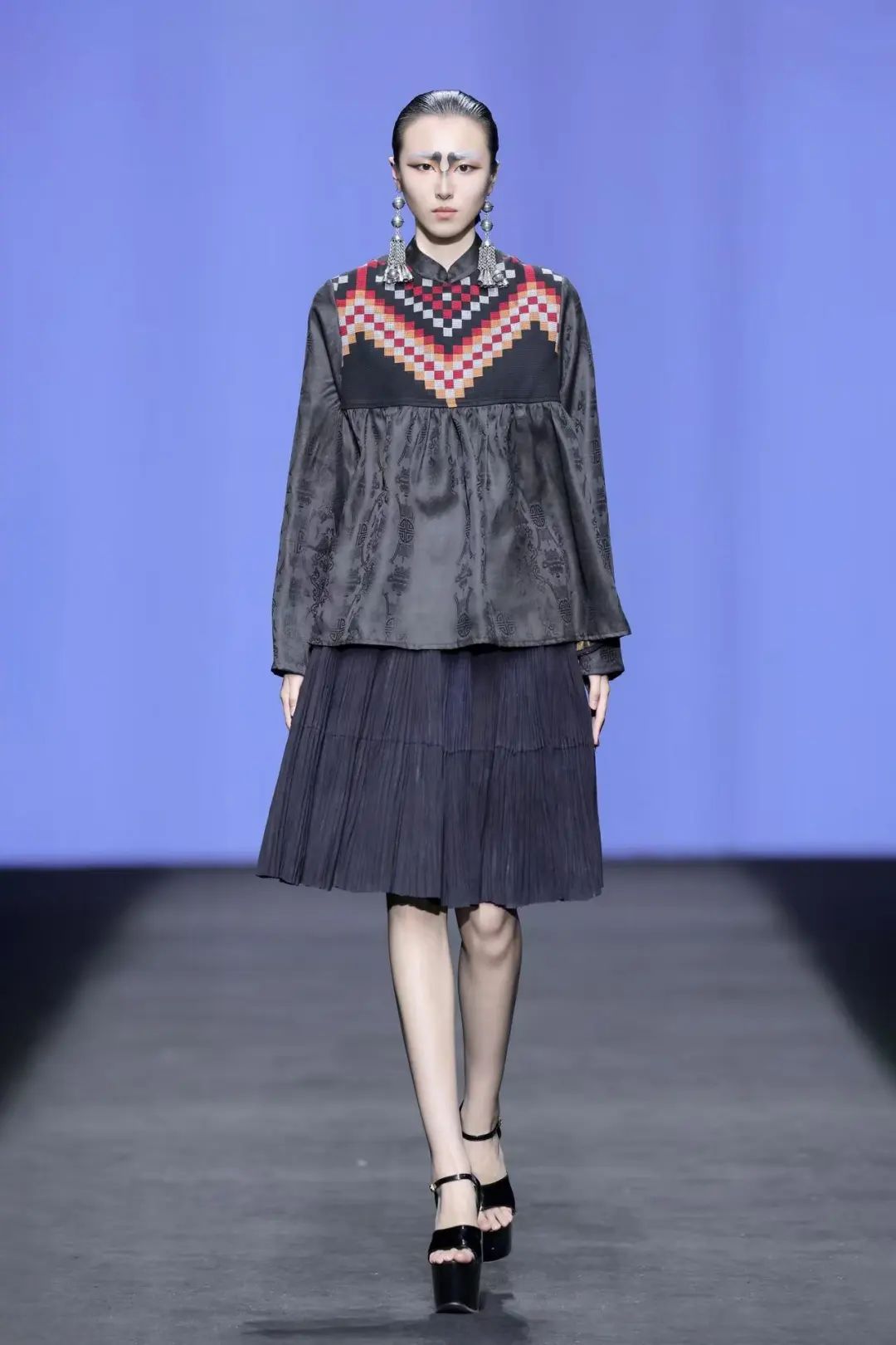 在本次時裝周上,周瓊選取西蘭卡普中的經(jīng)典圖案,如雙陽雀、鳳穿牡丹、四十八勾等,并通過現(xiàn)代剪裁手法和大膽的色彩碰撞,賦予了古老織錦全新的生命力。