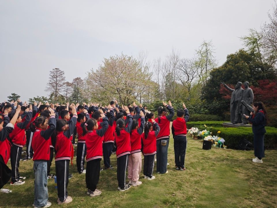 荊楚網(wǎng)(湖北日報網(wǎng))訊(通訊員劉洋、程珍)四月的東湖碧波輕漾,岸邊蒼柏園莊嚴(yán)肅穆。4月2日下午,東湖小學(xué)全體師生徒步三十分鐘,以“一捧東湖水清明祭忠魂”為主題,在蒼柏園開展了一場跨越時空的紅色對話。這場融合手工制作、實(shí)景研學(xué)、沉浸體驗(yàn)的祭掃活動,讓愛國主義情懷如春水般浸潤童心。