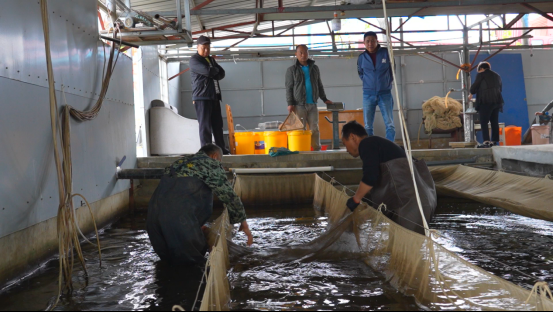 漁業(yè)發(fā)展給當?shù)卮迕駧砹藢崒嵲谠诘暮锰帯:献魃绮捎谩盎?農(nóng)戶”的模式,給周邊200多戶村民提供了穩(wěn)定的工作,還定期組織養(yǎng)殖技術(shù)培訓,從苗種投放、科學養(yǎng)殖到商品魚銷售,全程為村民提供幫助,拓寬了大家的增收渠道。