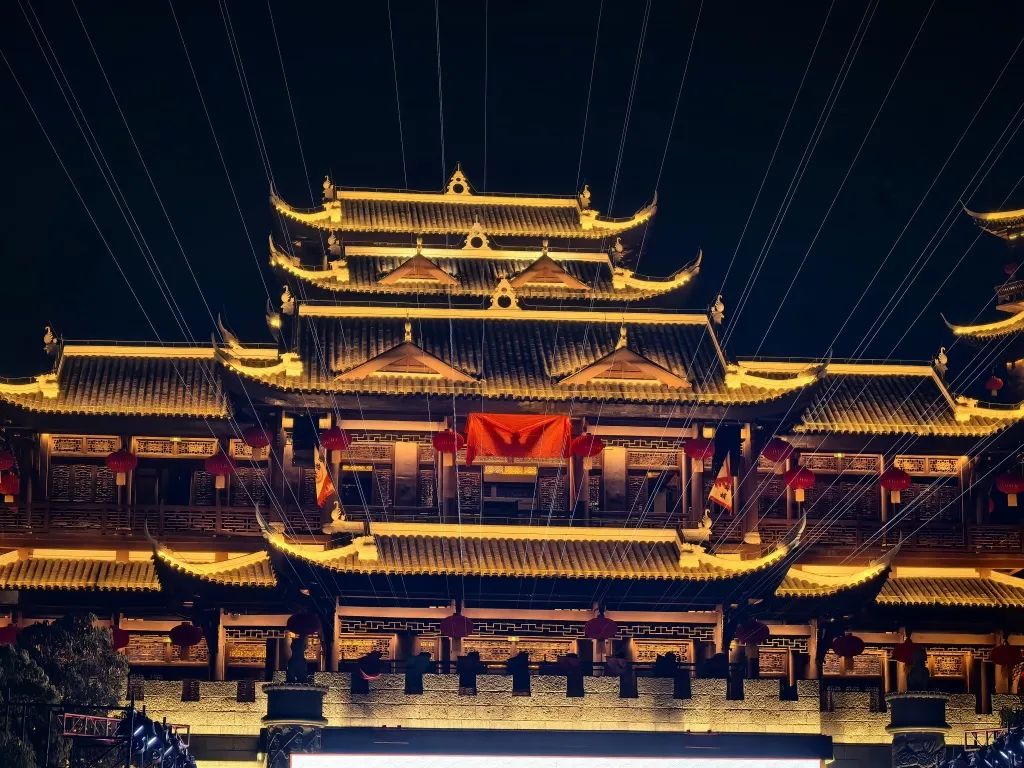 升級(jí)后的恩施土司城,將以“沉浸式文化體驗(yàn)綜合體”的全新姿態(tài),通過創(chuàng)新打造文旅體驗(yàn)空間,讓千年土司文化煥發(fā)時(shí)代魅力。同時(shí)還創(chuàng)新采用現(xiàn)代照明技術(shù),以光色分層、動(dòng)態(tài)控制、虛實(shí)結(jié)合的手法,構(gòu)建兼具儀式感與沉浸感的夜間景觀,實(shí)現(xiàn)建筑美學(xué)與文化內(nèi)涵的協(xié)同表達(dá),將南大門從功能性入口升華為土司文化的“光之殿堂”。