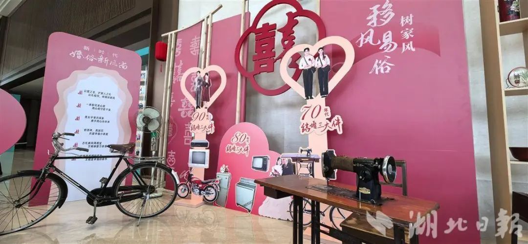 “文明家”區(qū)域,主要展示的有上世紀(jì)70—90年代的婚俗“老三件”和新時代婚俗新風(fēng)尚,意在加強對年輕人婚戀觀、家庭觀的引導(dǎo)。