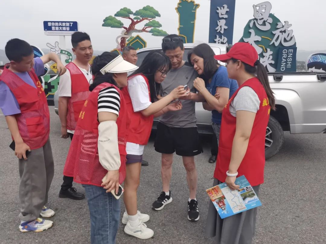 “一抹紅”也是這個(gè)假期恩施的亮點(diǎn),火車站、高速公路出口、重點(diǎn)景區(qū)公路沿線、景區(qū)內(nèi)部共設(shè)立了30余個(gè)文明旅游志愿服務(wù)點(diǎn),為游客提供旅游咨詢服務(wù)、線路指引、游覽線路提示等貼心的志愿服務(wù)。