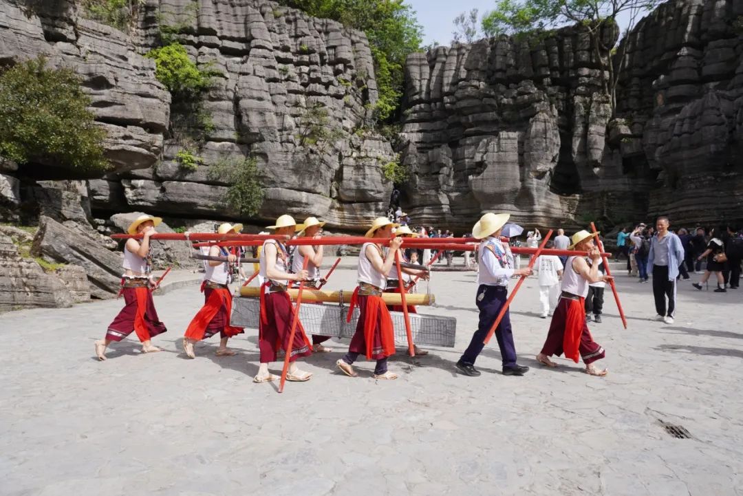 梭布埡石林景區(qū)游客參與石工號(hào)子互動(dòng)