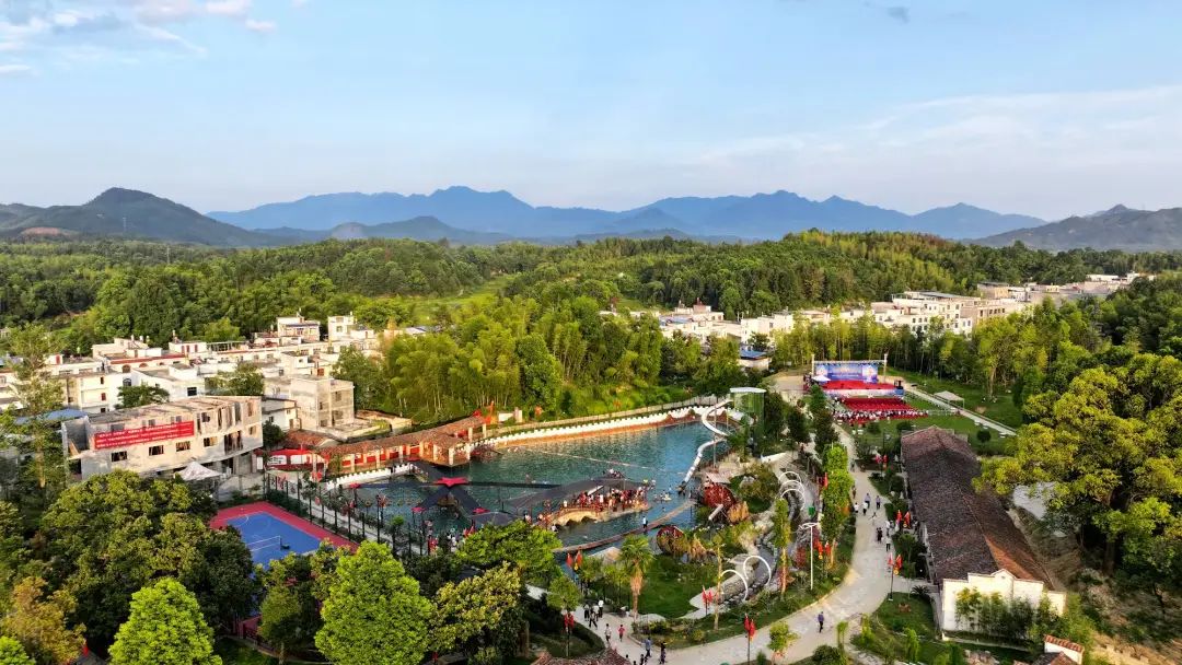 咸寧市通城縣關(guān)刀鎮(zhèn)高沖景區(qū),由當?shù)胤掂l(xiāng)創(chuàng)業(yè)青年徐子富夫婦利用村里山水資源和紅色資源投資創(chuàng)辦,建成文體健身廣場、黨史國史館、民俗館、水上樂園等。(通訊員 劉建平 攝)